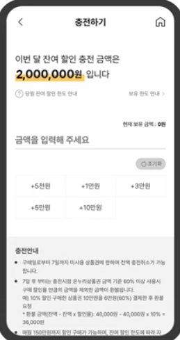 ⑬ 10% 할인가로 월 최대 200 만 원 충전.