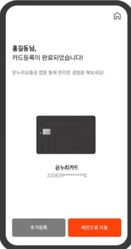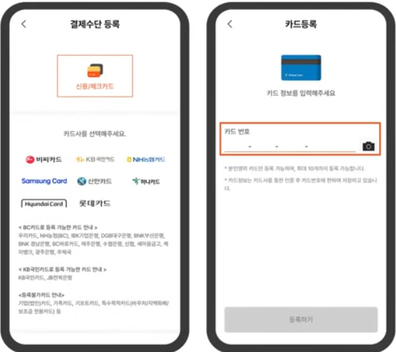 ⑩ 카드사 등록 후 카드번호 입력하면 완료.