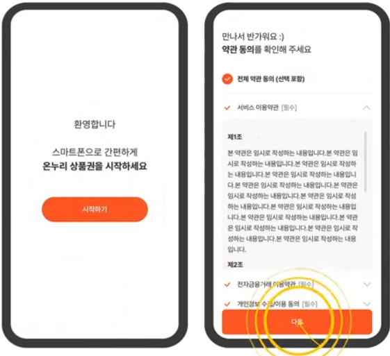 ② 다운로드 후 어플에 접속한 다음 시작하기 버튼을 눌러 회원가입을 한다.