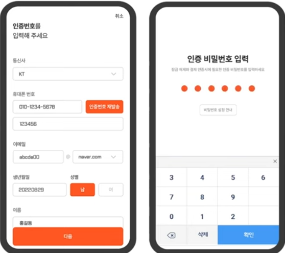 ③ 이름, 생년월일, 이메일 입력 후 휴대폰 본인인증을 진행한다.