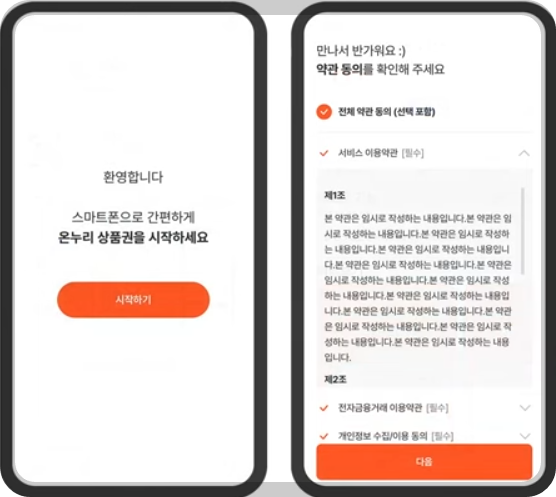③ 시작하기를 눌러주고 회원가입을 하니다. 약관체크 후 다음을 눌러줍니다.