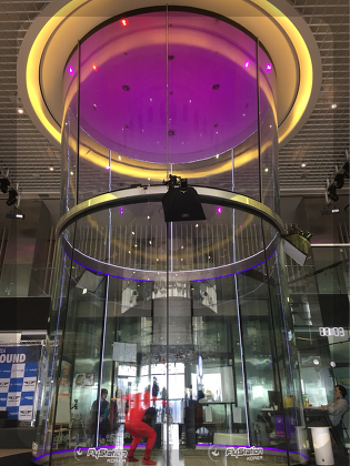 플라잉 스테이션은 스카이 다이버들의 연습용으로 사용하였던 것으로 알고 있다. 실내체험용 스포츠로 이용한다. 스카이 다이빙과는 반대로 위로 올라갔다가 지상으로 내려오며 빙빙 돌기도 한다. 플라잉중엔 대화를 할수는 없고 사인을 으로 서로 교감을 갖는다.