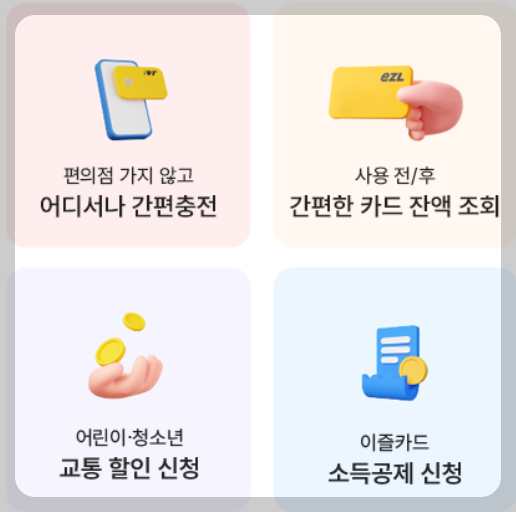 ⦁ 이 즐(EZL)은 전국 어디서나 교통카드 와 생활용품 구입이 가능한 할인카드입니다. 어린이ㆍ청소