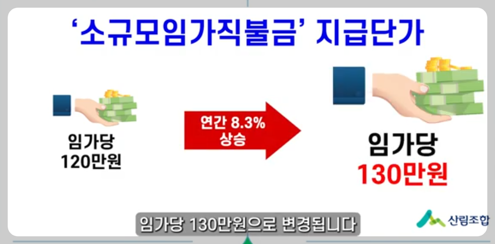 ① 소규모임가 직불금 : 0.5ha 이하의 소규모 산지. 임산물생산업에 종사한 기간이 길고 소득 수준