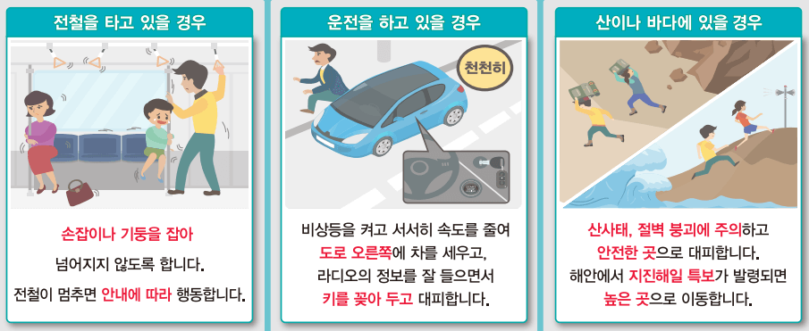 카테고리 없음 장소별 행동요령 by Bang cho ri 2023. 6. 10. 1. 건물 내부에 있을 때! 2. 다중이용시설에 있을 때! 3. 건물외부에 있을 때(전철, 자동차, 산이나 바다) □ 건물내부와 외부, 다중이용시설, 전철, 자동차, 산과 바다에서 지진발생 시 대피요령을 숙지하여 행동하기 바랍니다. 반응형 공유하기 게시글 관리 창업 으로 수익창출과 재산증식 !