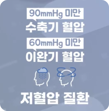 60mmHg 미만이면서 이로 인한 증상으로 무력감, 어지러움 둥이 동반될 경우 저혈압 질환이라고