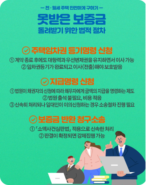 - 조치사항으로는 임대차가 끝난 후 보증금이 반환되지 아니한 경우 법원의 임차권 등기명령을 신
