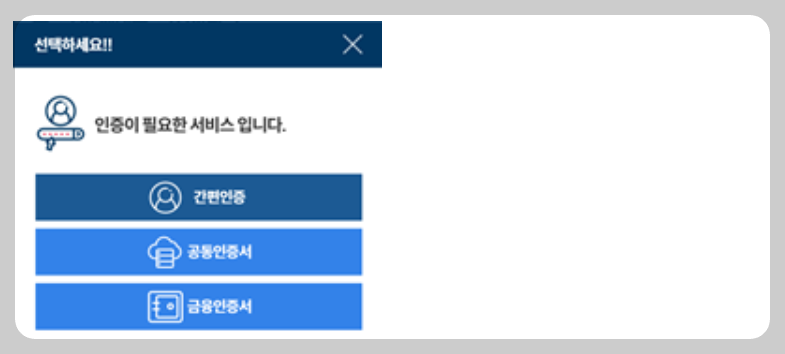 - 다, 정보확인을 위해 인증서가 필요하오니 인증서(간편 인증, 공동인증서, 금융인증서 중