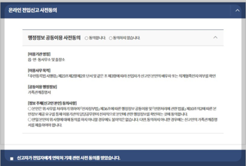 - 아래의 절차를 참고하시어 전입자 전원의 동의를 진행해 주시기 바랍니다.