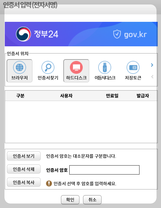 ⑥ 공동인증서를 누르면 위와 같은 화면이 나옵니다.