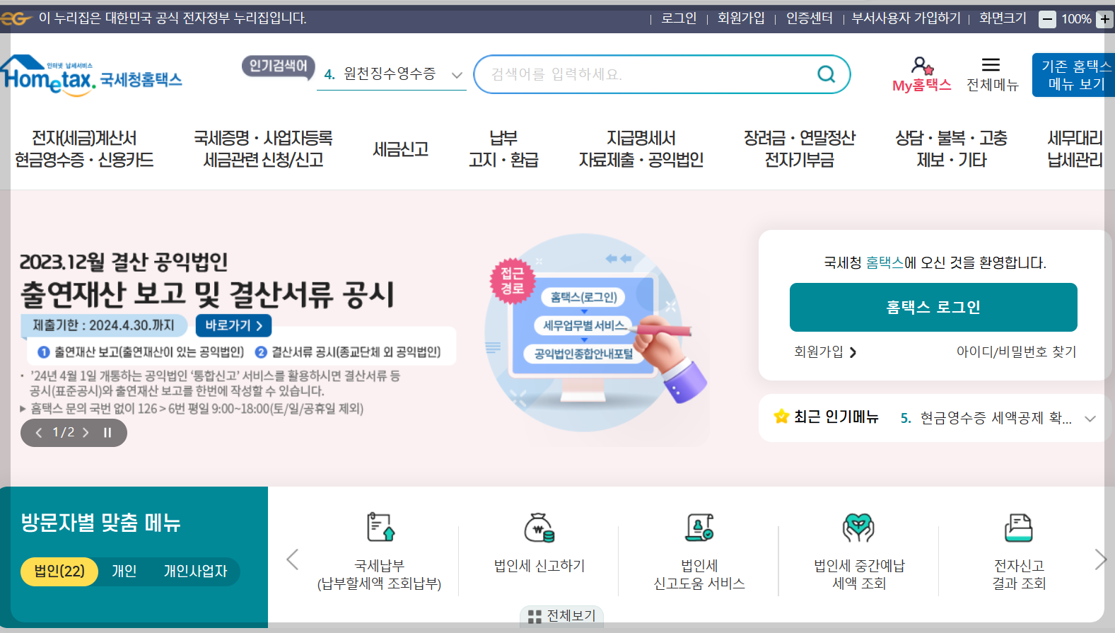 - 신고하는 과정에서 초과로 납부된 종합소득세는 환급금조회를 하여 환급받을 수 있습니다