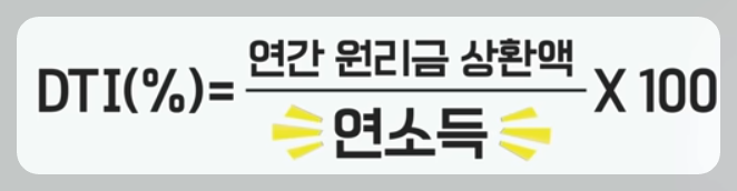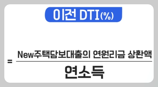 | DTI | - 소득대비 주택담보대출 원리금에대해 신용대출 등 다른대출에 이자를 더한 금융부채로 대출 한도를 계산합니다 - 내가 받으려는 주택담보대출의 연간 원리금 상환금액과 보유하고있는 부채의 연 이자 상환금액을 기준으로 합니다. |