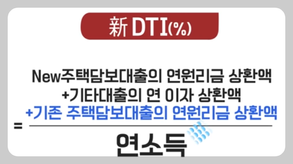 - 강화된 신DTI보다 더 엄격한 기준입니다. - 대출받으려는 사람에 소득을 대비해서 전체 금융 부채의 원리 금상환액의 비율을 말하는 것입니다 가 있는데 또다른 대출을 받으려고 할때, 대출받으려는 사람의 현재 소득 기준으로 원리금상환능력을 심사하는 것입니다. |