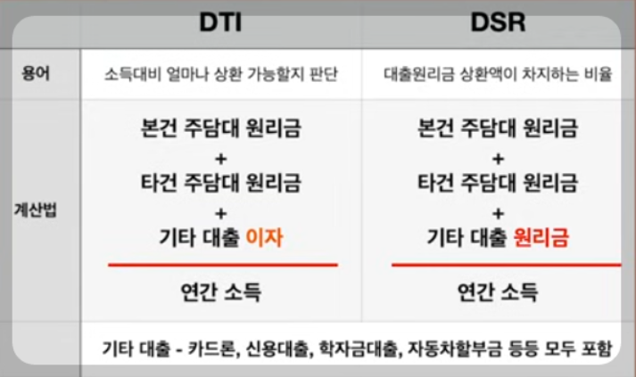 5. 주택담보대출 D TI와 DSR 차이점.