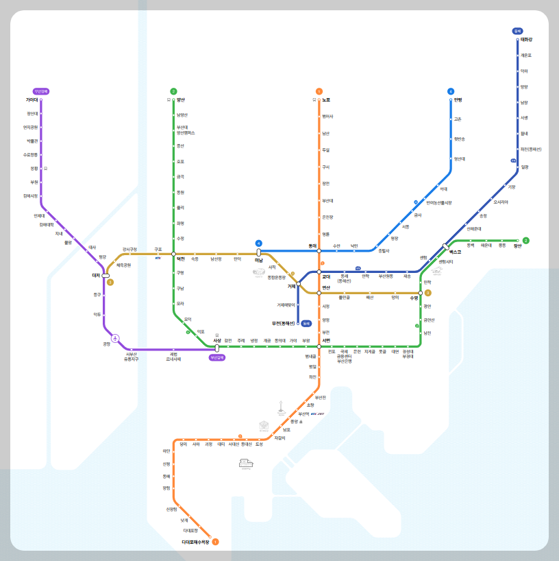 부산 지하철 노선도.