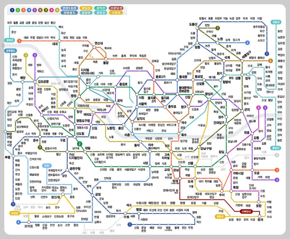 서울 지하철 노선도.