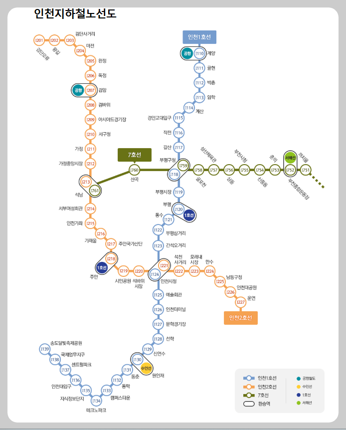 ⦁ 인천 전체 : 1호선 ~ 2호선.