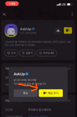 ④ 아래 화면에서 채널 추가를 누릅니다.