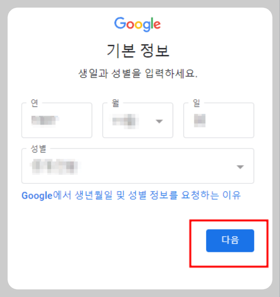 ⑦ 기본정보 입력 후 다음 누릅니다.