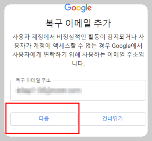 ⑫ 다른 메일주소가 있으면 입력하고 없으면 건너뛰기합니다.