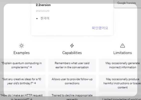 위 화면을 누르면 아래 ChatGPT소개 화면이 나옵니다.