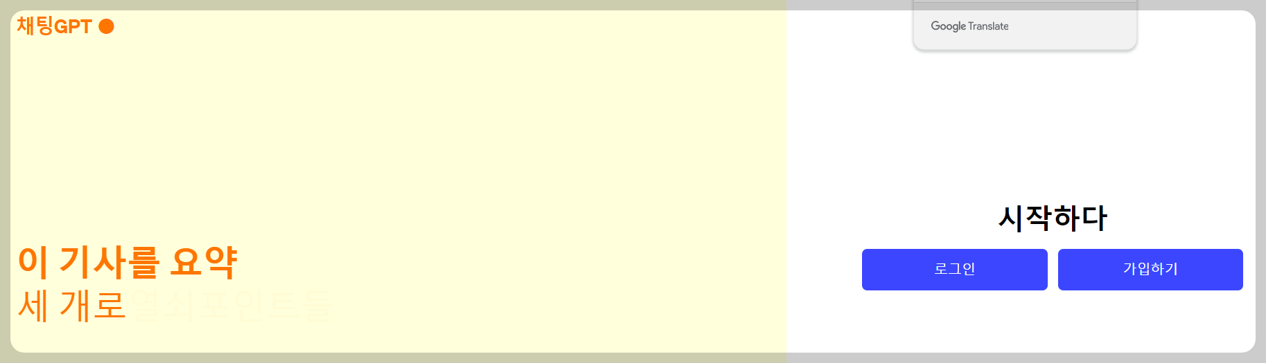 위 화면 죄측아래 ChatGPT를 사용해보세요를 누르면 로그인과 가입하기 화면이 나옵니다.
