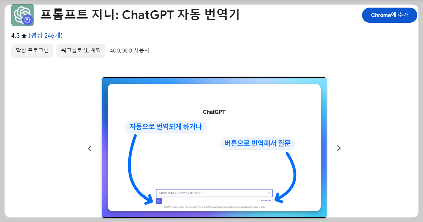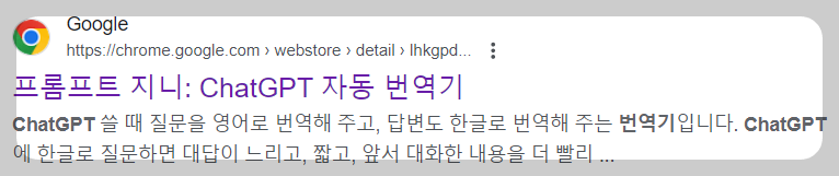 아래 화면 구글검색에 프롬프트 지니 ChatGPT 자동변역기를 입력합니다.