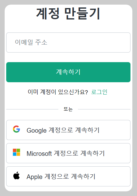 ⑧ 위 화면에서 우측아래 sign up을 클릭하면 아래 계정 만들기가 나옵니다.