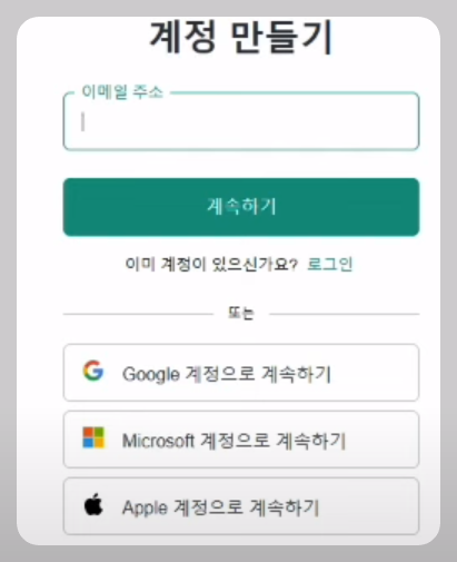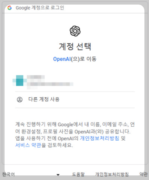 - 챗GPT를 구글계정에 메일 주소가 필요합니다. 구글계정이 없으신 분들은 다음과 같이 실행하시면 됩니다.