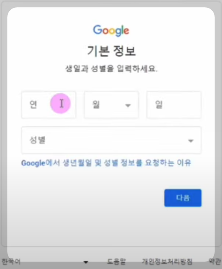 ⑤ 위 화면에 성과 이름을 입력하고 다음버튼을 크릭 합니다.