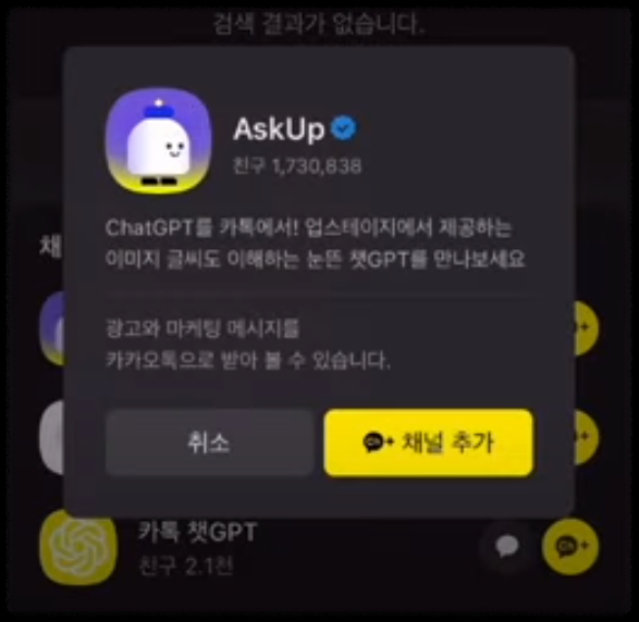 ① 카카오톡에 Askup을 이용하여 챗GPT의 복잡한 영어 사이트를 사용하지 않아도 됩니다.