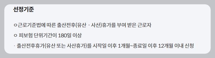 ▶ 근로기준법에 따른 출산전후(유산. 사산) 휴가를 부여받은 근로자.