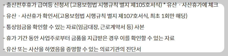 ▶ 출산전후휴가(유산 또는 사산휴가)를 시작일로 1개월 ~ 종료일 이후 12개월 이내 신청.
