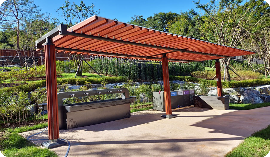 ⯄ 162만㎡의 우거진 숲과 도심 내 보기 드문 자연환경 속에 조성된 초안산 캠핑장은 기존 경사지형을 이용
