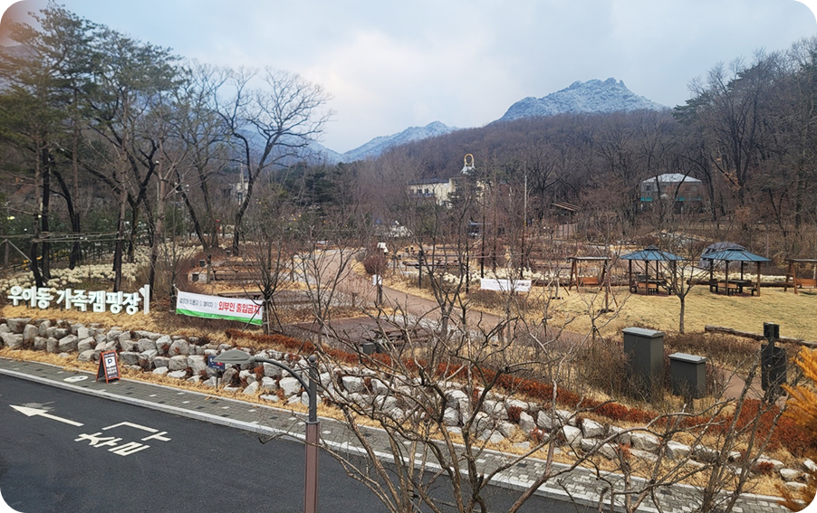 ⯄ 북한산과 우이천이 만나는 청량한 자연을 품에 안은 그대로 형성된 캠핑장으로 눈앞에 펼쳐진 자연의 절