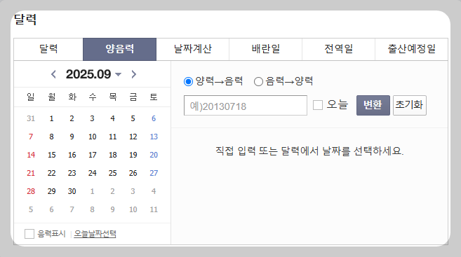 ✱ 9월 양음력 변환과 일생생활에 필요한 날짜계산 변환.