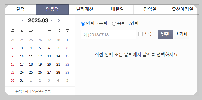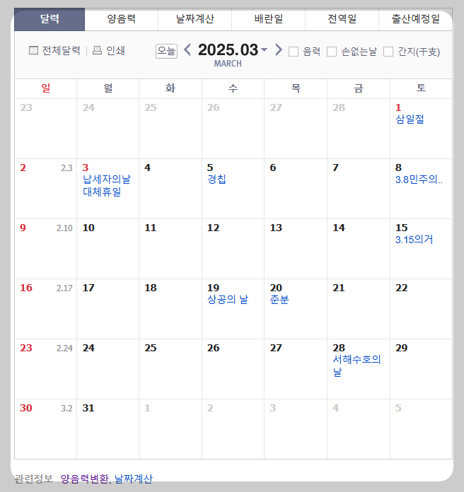 ✱ 3월 양음력 변환과 일생생활에 필요한 날짜계산 변환.