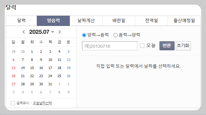 ✱ 7월 양음력 변환과 일생생활에 필요한 날짜계산 변환.