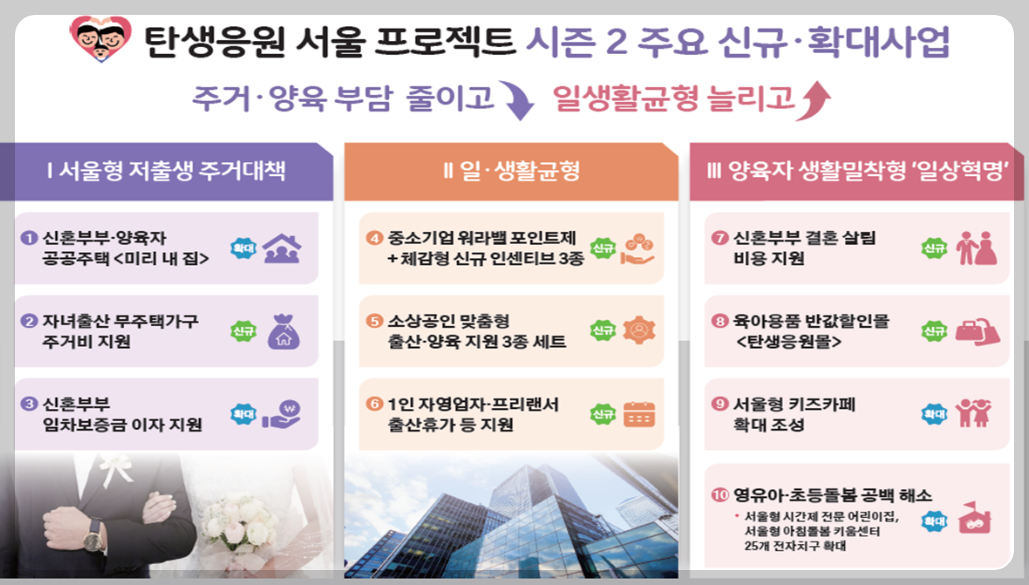 탄생응원 서울 프로젝트는 새 생명 탄생을 응원하고 육아부담줄이면서 시즌2로 지원하는 저출생