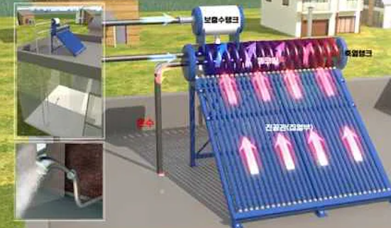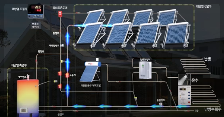 ② 아래 화면온수용와 난방 태양열 장치.