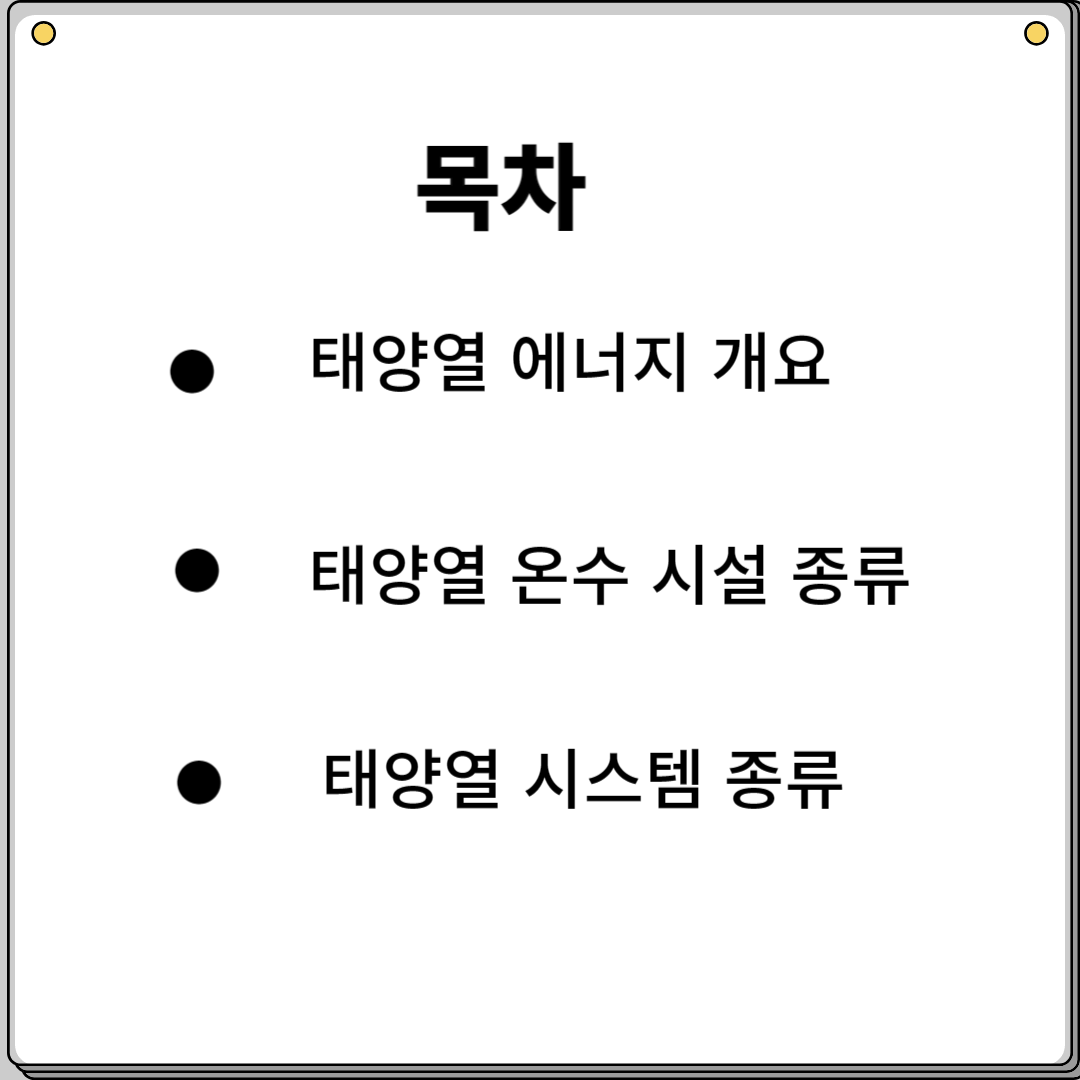 태양열 축열조 : 태양열을 이용해 가열된 물을 저장하는 탱크.
