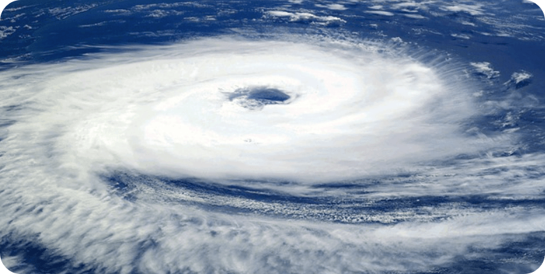 ◻ 태풍의 눈의 크기는 대체로 지름이 10∼30㎞이며 하강기류가 있어서 구름은 거의 없다.