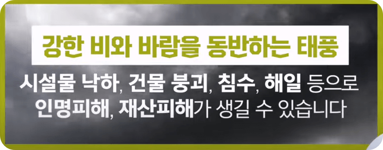 ◻ 태풍시 지켜야 할 5가지 행동요령, 미리 알고 실천하면 피해를 막을 수 있습니다.