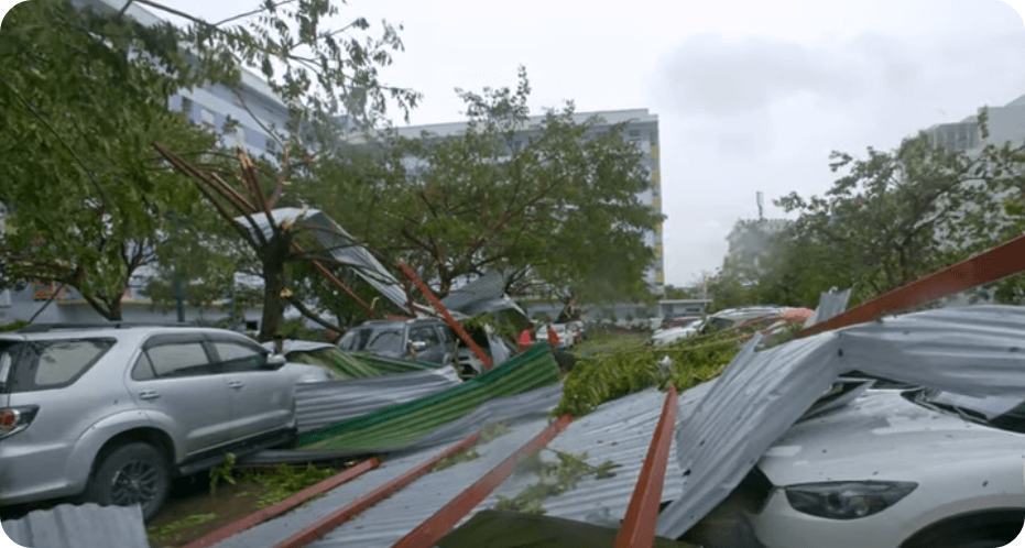 ◻ 태풍은 강한 바람을 일으켜 수많은 가로수를 쓰러트리고, 전신주와 가로등에 큰 피해를 준다.