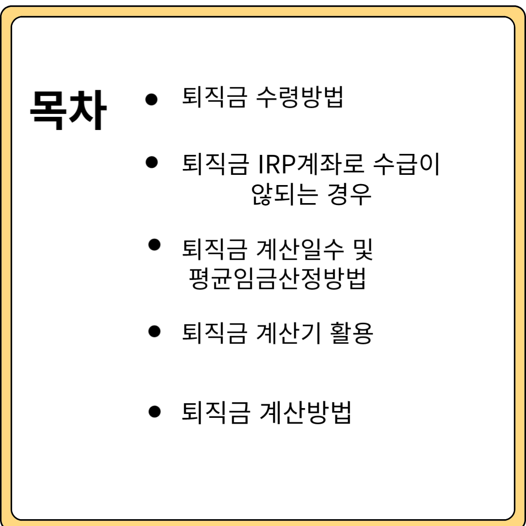 하기 전까지 가지고 있다가 퇴직할 때 목돈으로 지급하는 것입니다. 퇴직계산기로 사전에 수령금액을 확인하여 절세와 감면혜택을 받도록 하고 미래의 계획을 세우는데 도움이 많은 도움이 됩니다.