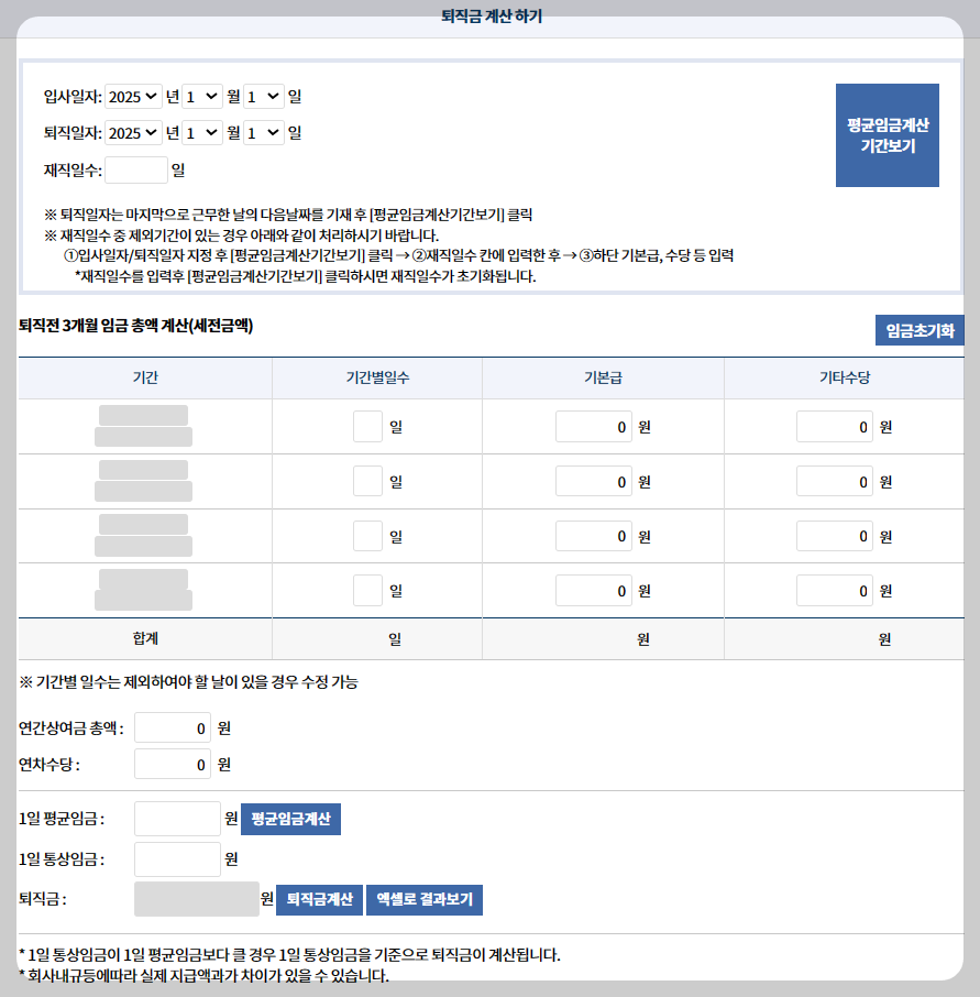 - 평균임금 : 3개월 이내 급여 ÷ 3개월 근무일.