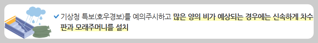 | 호우예보가 내려졌을 때 | 호우주의보ㆍ경보가 내려졌을 때 | 호우가 지나갔을때 |
