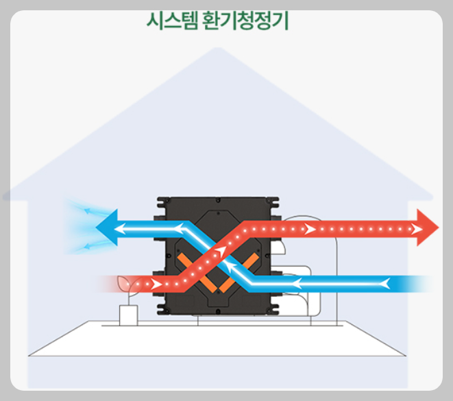 ㅡ 실내외 공기의 열에너지를 교환하여 에너지 손실 최소화 하기 위해 전열교환기술을 사용했습니다.