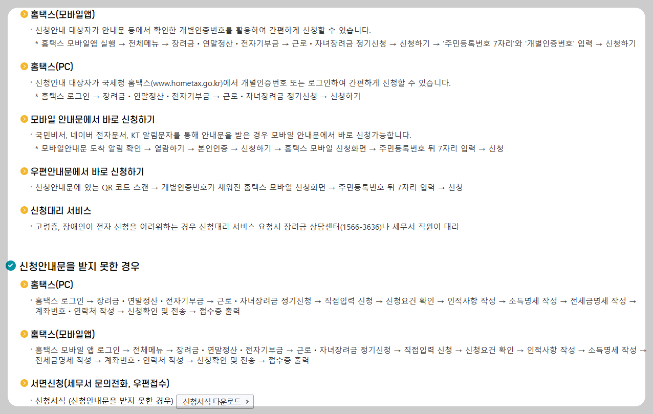 - 정기신청 기간:'24.5.1.~5.31., 기한 후 신청 기간 :'24.6.1.~11.30