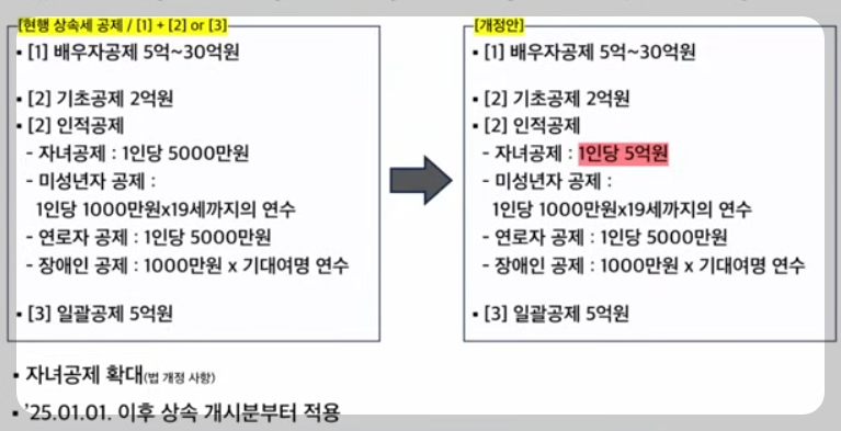 - 2024년 7월 25일 발표된 세법개정안은 대체적으로 상속과 증여 부담이 완화되었습니다.